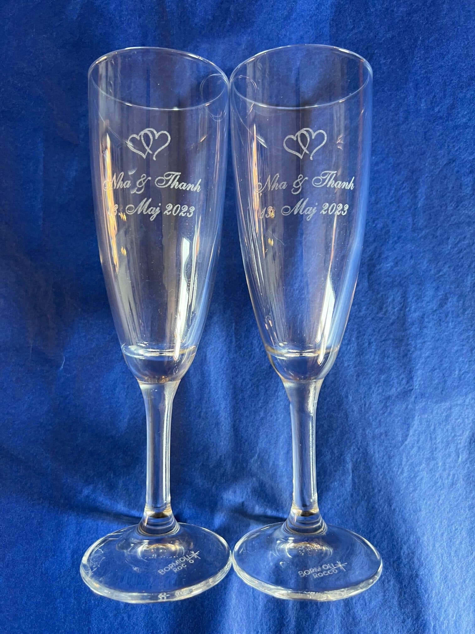 Giv dine glas et personligt og eksklusivt udtryk med professionel gravering. Vi tilbyder præcis og holdbar gravering direkte på glas, der fremhæver elegance og gør den helt unik.