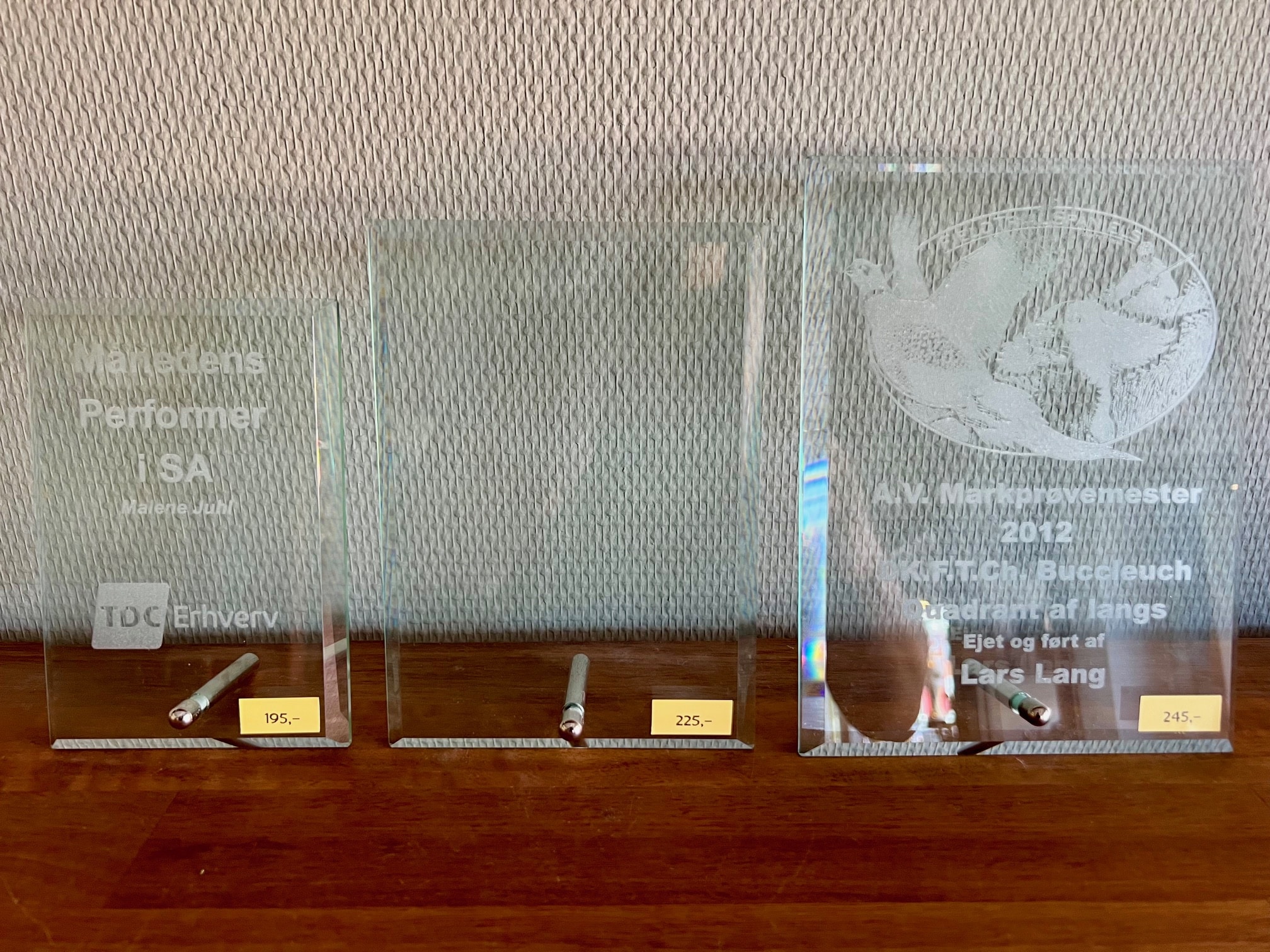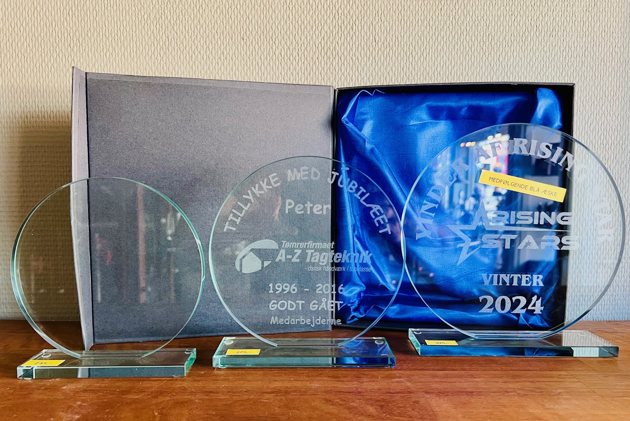 Uanset om det drejer sig om en prisoverrækkelse, et jubilæum, en sportspræstation eller en særlig anerkendelse, skaber vi en flot og detaljeret gravering, der bevarer mindet for altid.